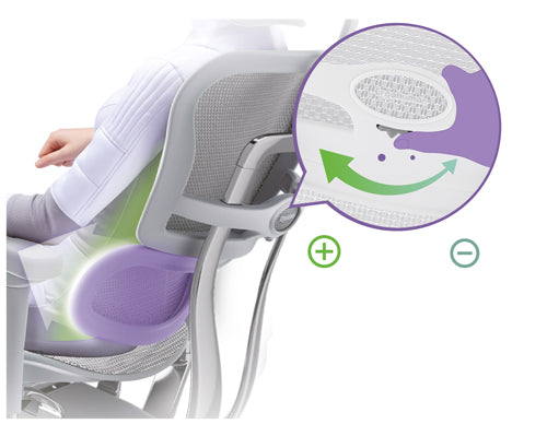 - Molette arrière : augmentez ou diminuez la fermeté en un geste.Maintien constant de la courbure naturelle, même en inclinaison.