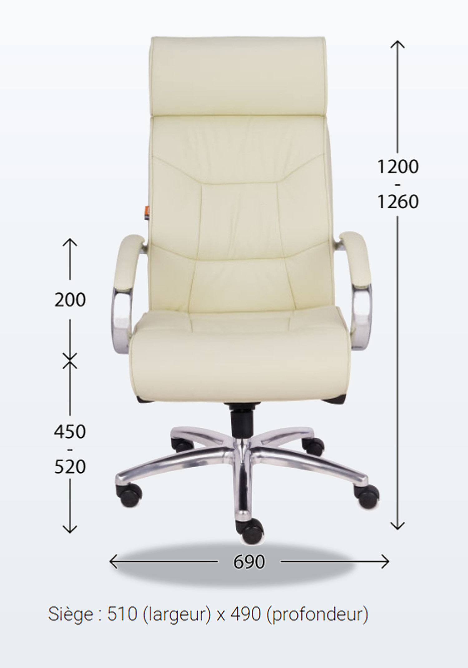 Hauteur réglable 1200–1260 mm, assise 510 x 490 mm, hauteur d’assise 450–520 mm. Un design élégant et un confort optimal pour vos journées de travail.