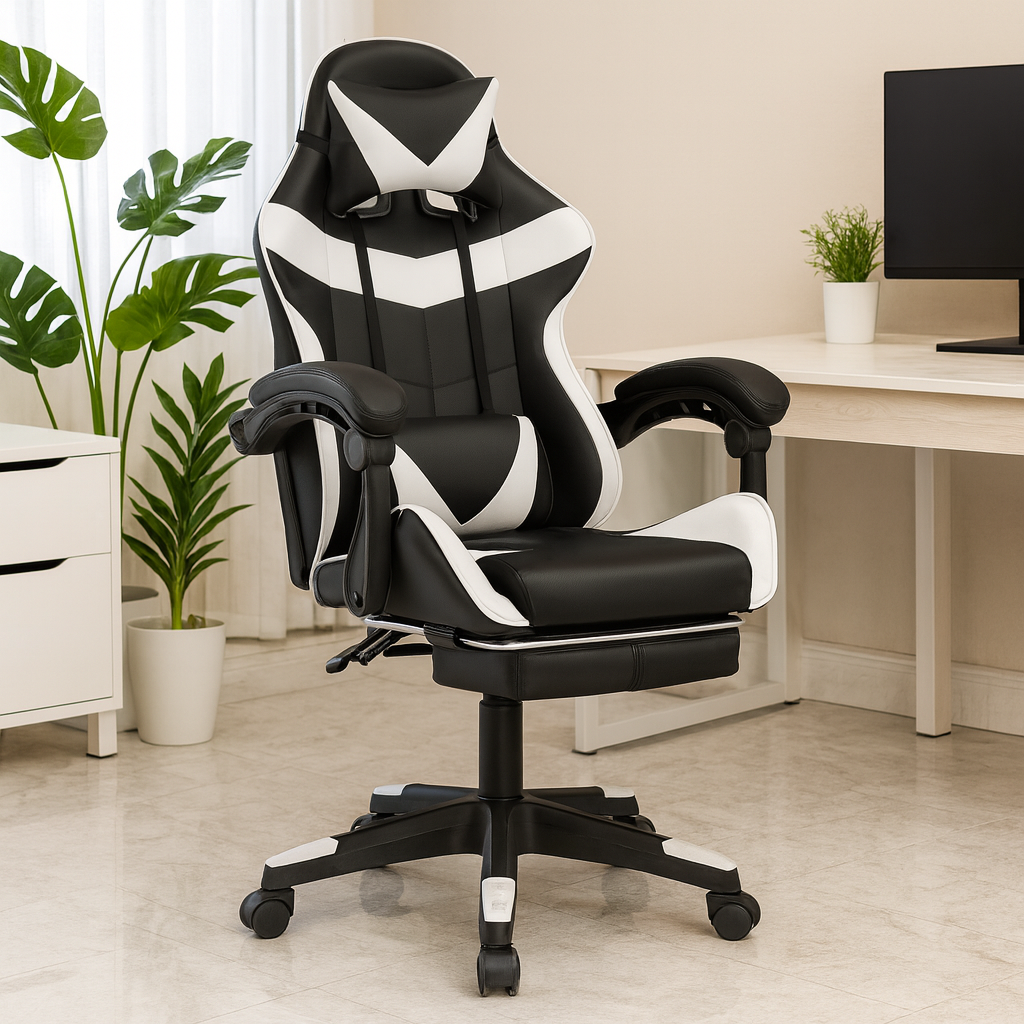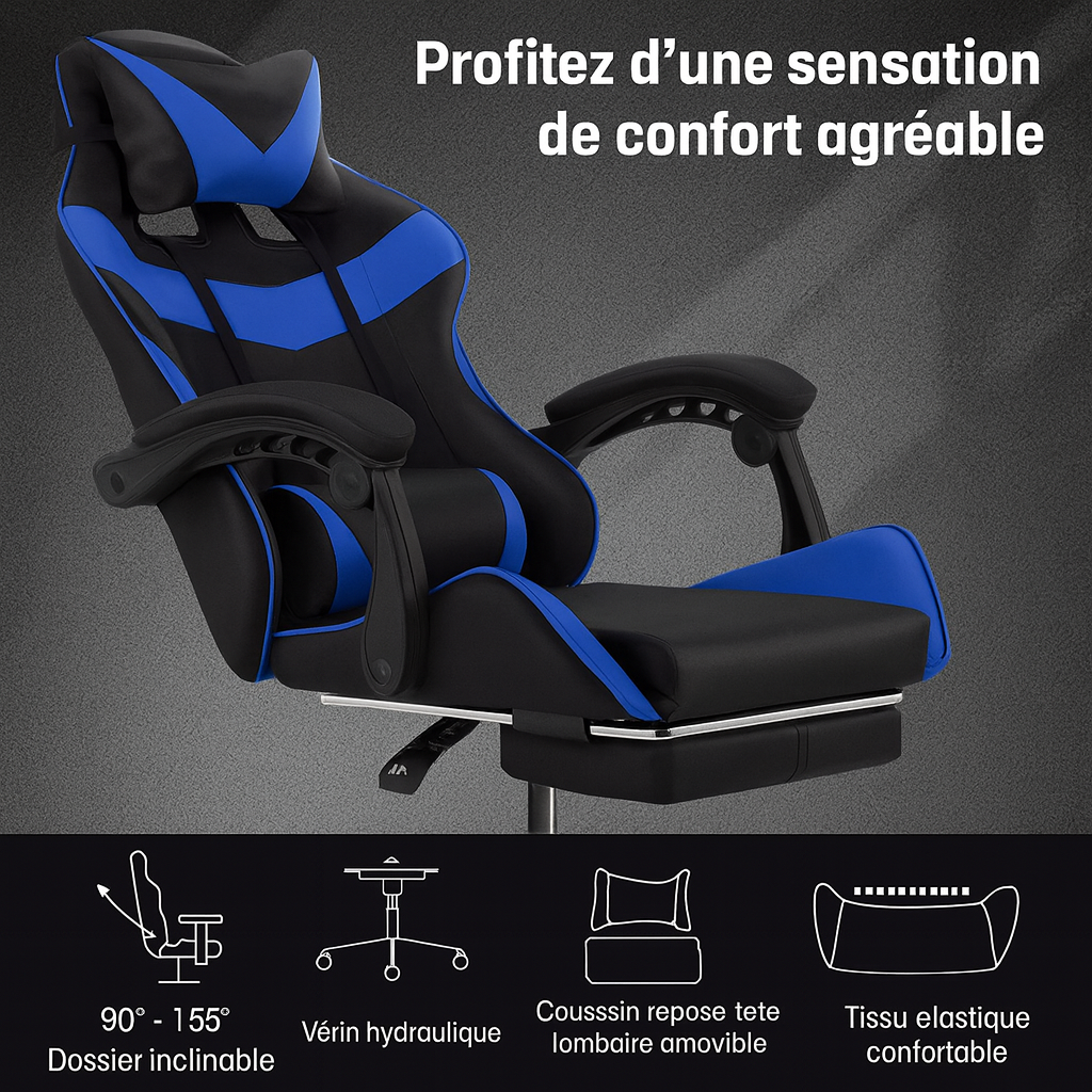 Offrez-vous une assise ergonomique avec appui-tête, accoudoirs rembourrés et dossier inclinable.